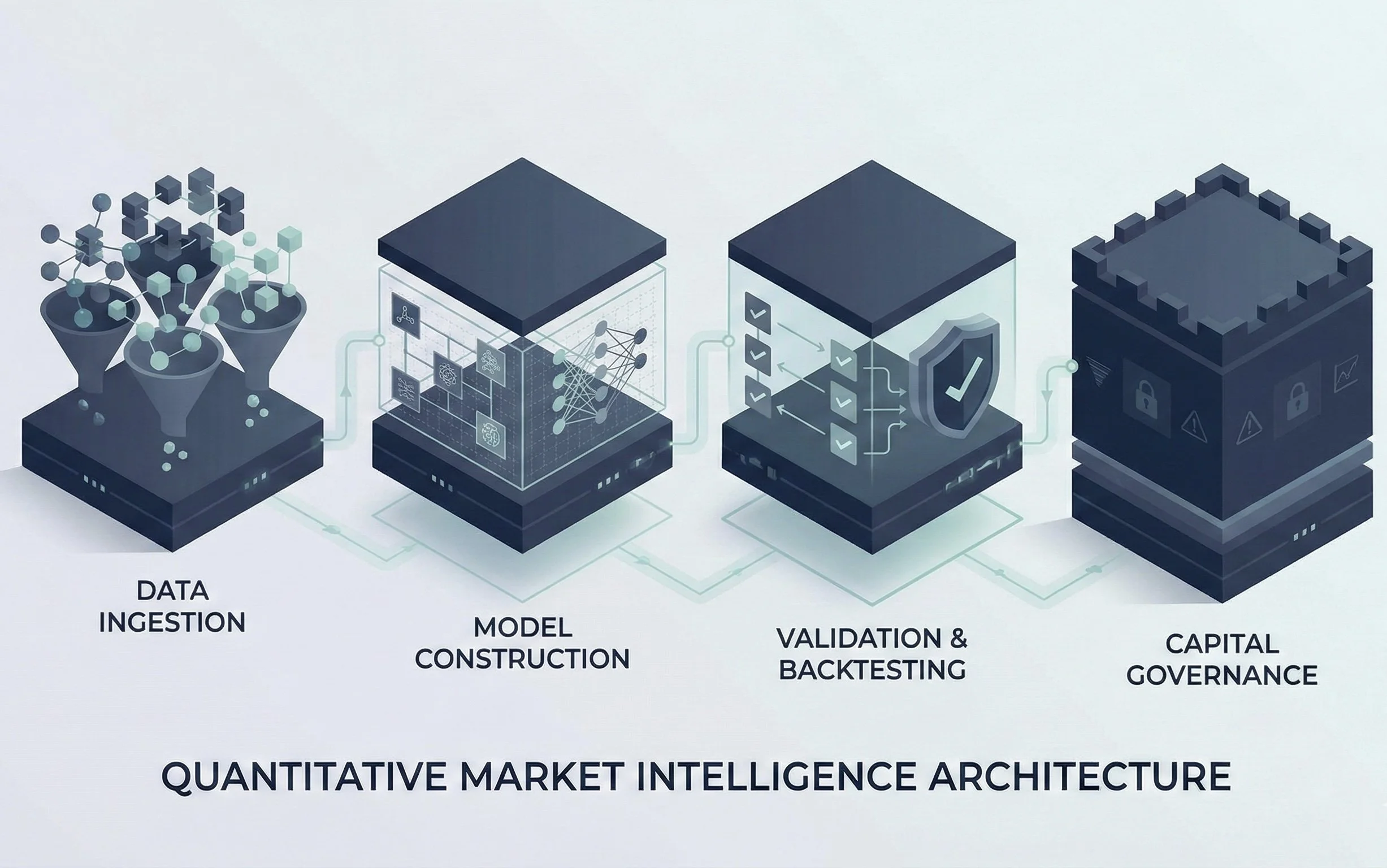 A structured architecture for modeling, validating, and deploying market intelligence systems grounded in quantitative discipline.
